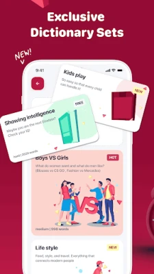 Ši programėlė išsiskiria ne tik dailiu dizainu ir sklandžia animacija, bet ir turinio gausa. Jos lobyną sudaro daugiau nei 5000 kruopščiai atrinktų, unikalių žodžių, suskirstytų į įvairias temines kategorijas. Nesvarbu, ar esate filmų mėgėjas, muzikos gurmanas, o gal ieškote specializuotų žodynų "Vaikinams prieš Merginas" ar "Madingoms merginoms" – čia rasite tai, kas sudomins kiekvieną grupę. Mėgaukitės žaidimu be jokių apribojimų, nes programėlė yra visiškai nemokama ir neturi jokių erzinančių reklamų, užtikrinančių nenutrūkstamą pramogą.