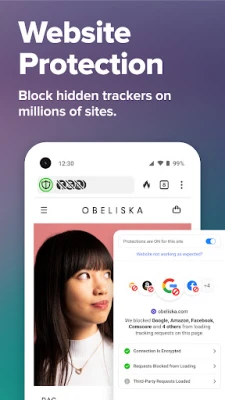 Pradėkite savo kelionę internete su neprilygstama apsauga ir ramybe, kurią suteikia DuckDuckGo. Pamirškite nuolatinį sekimą ir duomenų rinkimą – ši programa yra jūsų patikimas skydas skaitmeniniame pasaulyje. Nuo pat pirmo prisilietimo prie paieškos laukelio, DuckDuckGo privatumą paieškose paverčia numatytąja nuostata, leisdama jums laisvai ieškoti informacijos internete be jokių stebėjimo pėdsakų. Naršykite be baimės, žinodami, kad dauguma trečiųjų šalių slapukų, bandančių jus sekti, yra veiksmingai blokuojami, kol dar net nepradėjo veikti.