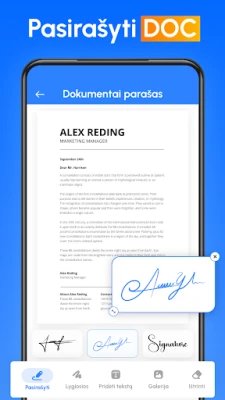 Su „Signature Maker" dokumentų valdymas tampa itin paprastas. Importuokite reikiamus failus iš savo įrenginio, pridėkite išsaugotą parašą ar net papildomos teksto informacijos, pavyzdžiui, datas, ir akimirksniu gaukite pasirašytą PDF failą. Šis skaitmeninis sprendimas leidžia ne tik greitai užbaigti svarbius sandorius, bet ir lanksčiai dalintis pasirašytais dokumentais su kolegomis, šeima ar partneriais įvairiais kanalais. Pakvieskite kitus lengvai užpildyti ir pasirašyti dokumentus per kelias sekundes, taip užtikrinant sklandų bendradarbiavimą ir leidžiant jums sutelkti dėmesį į tai, kas išties svarbu.
