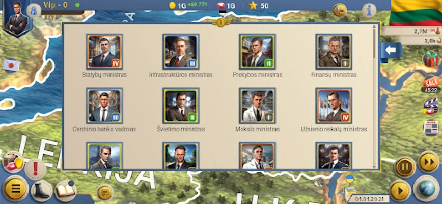 Jūsų vidaus politikos sėkmė tiesiogiai priklausys nuo gebėjimo patenkinti piliečių poreikius. Prižiūrėkite prezidento populiarumą, kad išvengtumėte masinių neramumų ir revoliucijų. Statykite gyvybiškai svarbią infrastruktūrą – nuo pramonės gigantų ir žemės ūkio kompleksų iki modernių energetikos šaltinių, įskaitant tvarią žaliąją energiją. Stiprinkite ir finansuokite esmines ministerijas, tokias kaip Sveikatos apsaugos, Švietimo ir Kultūros, rengdami grandiozinius renginius, pavyzdžiui, kino festivalius ar pasaulinius sporto čempionatus. Plėtokite turizmo sektorių, statydami ikoninius pasaulio stebuklus ir paversdami savo šalį magnetu lankytojams.