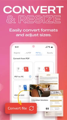 **PDF Editor** suteikia jums visas priemones, reikalingas profesionaliam ir saugiam dokumentų valdymui. Lengvai apjunkite kelis PDF failus į vieną, pridėkite komentarus, pažymėkite svarbias dalis arba apsaugokite slaptus duomenis slaptažodžiu. Pritaikykite dokumentus naudodami vandens ženklus, antraštes ir poraštes, ir be vargo organizuokite puslapius – keiskite jų tvarką, pasukite ar ištrinkite. Sklandus integravimas su debesų saugyklomis, tokiomis kaip Google Drive, OneDrive ir Dropbox, užtikrina, kad jūsų failai visada būtų pasiekiami. Atraskite šablonus įvairiems projektams: sąskaitoms, pristatymams, gyvenimo aprašymams ir rinkodaros medžiagai.